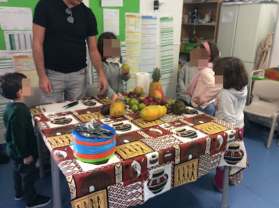 Foi uma semana em grande, na escola tivemos duas nutricionistas que nos falaram sobre a roda dos alimentos. Depois de um jogo divertido criámos um lanche com frutas, que muitos amigos ainda não tinham provado tais como: mirtilos, amoras, morangos e bananas. Estava mesmo saboroso o nosso lanche! Que acham?